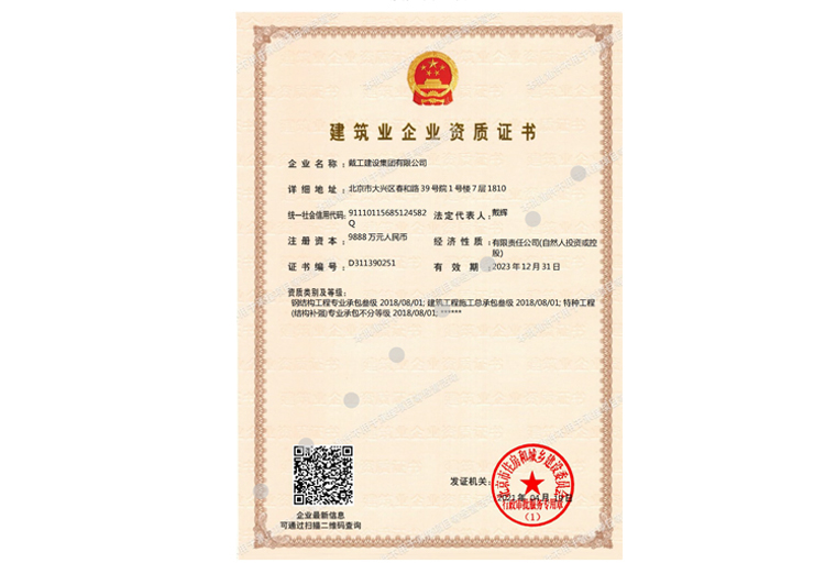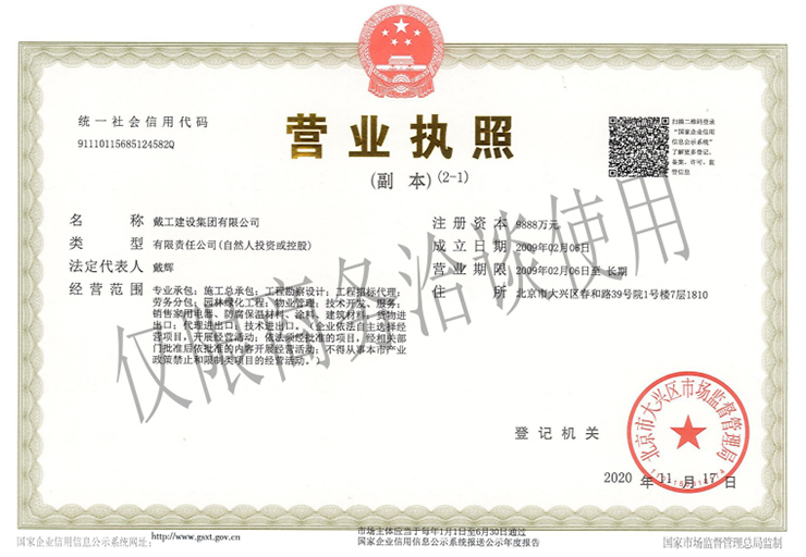 戴工建設(shè)集團(tuán)有限公司,創(chuàng)建于2009年,注冊資本9888萬元人民幣。公司位于北京市大興區(qū)。具有建委頒發(fā)的建筑裝飾裝修專業(yè)壹級,防水保溫工程專業(yè)壹級,建筑幕墻專業(yè)貳級,消防設(shè)施專業(yè)貳級,電子與智能化專業(yè)貳級,特種工程(結(jié)構(gòu)補(bǔ)強(qiáng))專業(yè)不分等級,建筑機(jī)電安裝專業(yè)貳級,環(huán)保工程專業(yè)貳級,鋼結(jié)構(gòu)專業(yè)貳級,建筑工程總承包貳級,建筑裝飾工程設(shè)計(jì)專項(xiàng)甲級,展覽陳列工程設(shè)計(jì)與施工壹級,展覽展示工程壹級...更多>>
